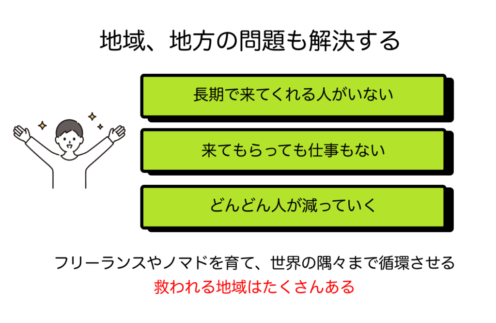 本来あるべきフリーランスやノマドが地方に貢献する構図が成り立ちません。