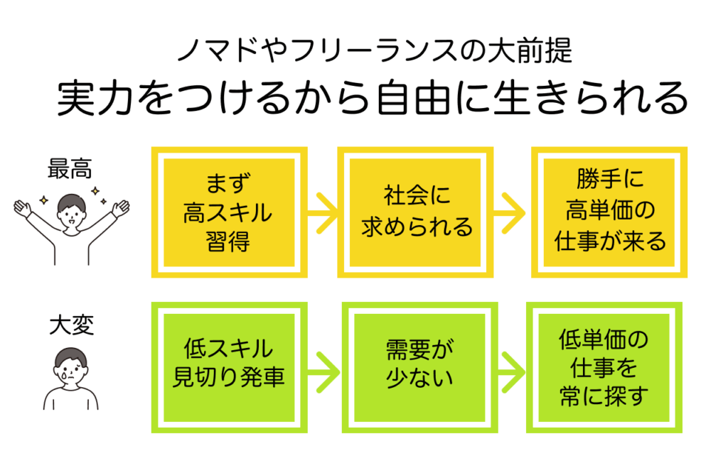 フリーランスやノマドは「生き方」であり、その前に「実力」を身につける必要がある。