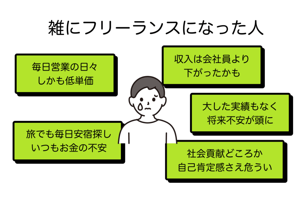 それが「中途半端」なフリーランスやノマドに対する世間的評価です。